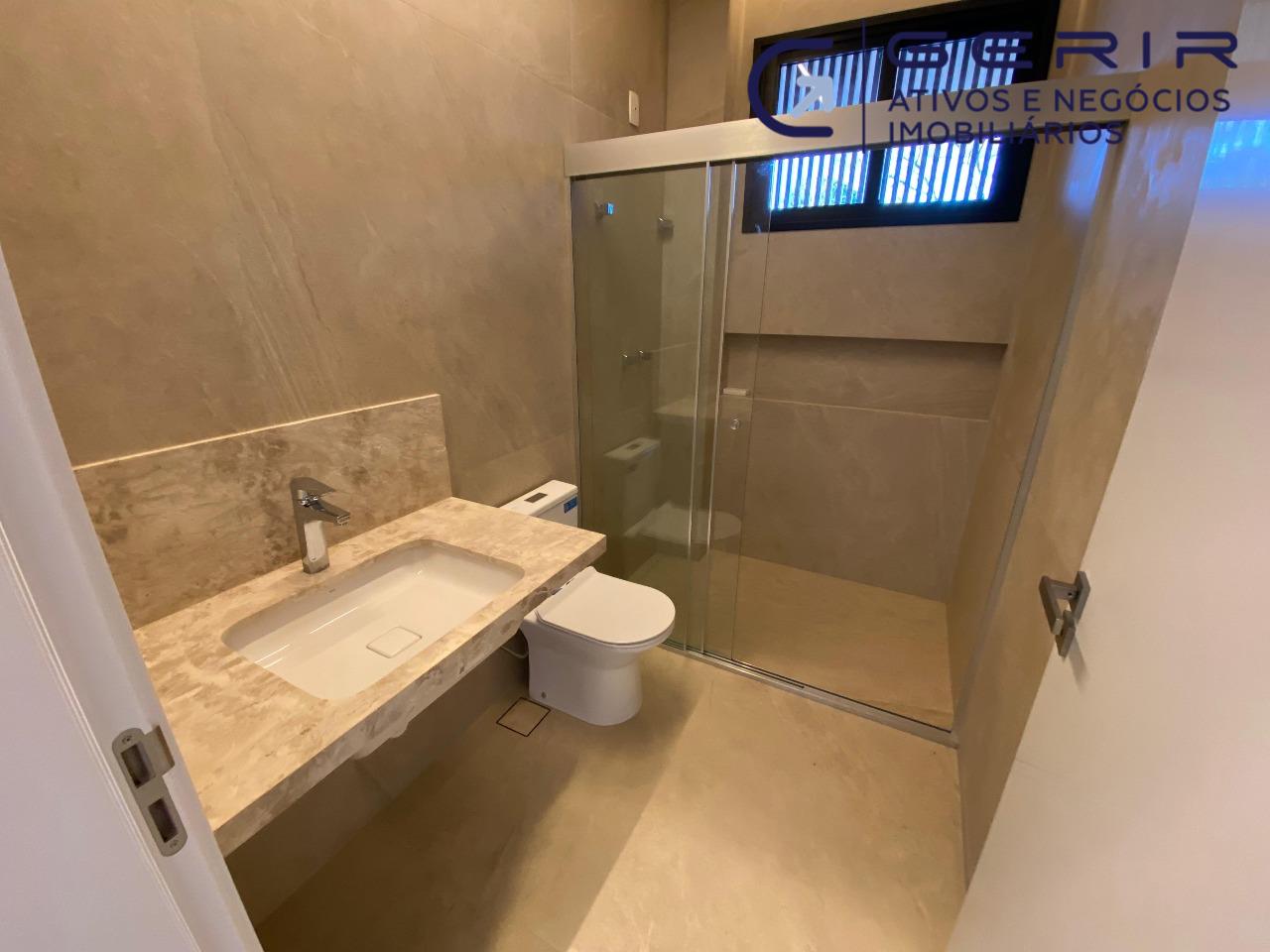 Projetada para oferecer máxima qualidade de vida, a residência principal conta com quatro suítes extremamente confortáveis, sendo duas delas com closets espaçosos que garantem privacidade e organização. Todos os banheiros foram cuidadosamente planejados com acabamentos de alto padrão, iluminação natural abundante e boxes em vidro temperado, proporcionando um ambiente elegante e acolhedor. A área social impressiona pela amplitude e luminosidade, distribuída em três ambientes integrados, perfeita para momentos de convívio e recepção com charme e comodidade. A cozinha, completamente planejada e climatizada, alia praticidade e modernidade, sendo complementada por uma lavanderia independente, lavabo e uma dependência completa de empregada (DCE), ideal para o dia a dia de famílias que buscam praticidade com conforto.