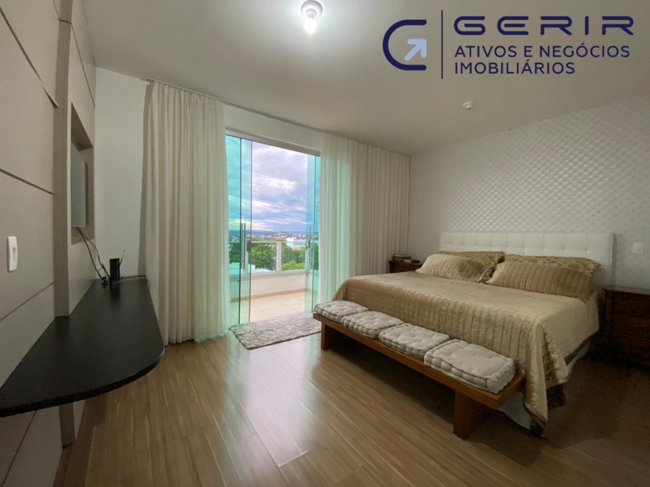 01 suíte máster com closet com armários planejados, banheiro espaçoso com banheira de hidromassagem, varanda com vista definitiva para lagoa;