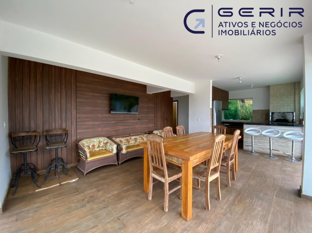 Churrasqueira, armários planejados, painel de TV planejado, varanda ampla com vista para área verde, piscina com prainha e iluminação, ducha, banheiro.